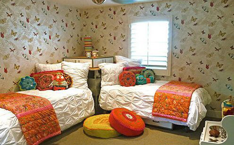 ? ? ? ? 拐角雙床:在兒童房墻角處做雙床也是不錯的設計,中間可以用儲物柜鏈接。這樣設計使房間空間開闊許多,控制區域可以作為孩子的娛樂區。